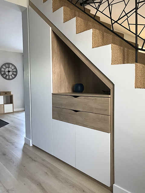 En exploitant l'espace sous escalier de manière recto verso, nous avons créé deux zones distinctes et fonctionnelles qui répondent parfaitement à vos besoins.