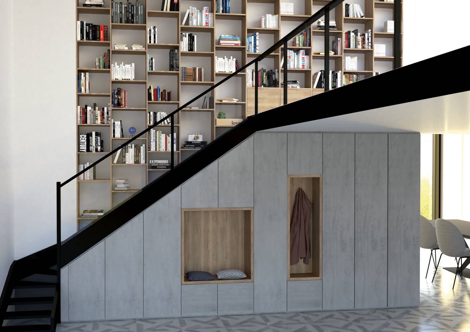 Les espaces sous-escalier et en sous-pente sont souvent négligés, perçus comme des coins inutilisés ou des défis insurmontables. Chez Intérieurs Design Joyas by Joyas Agencement, nous percevons ces espaces comme des occasions uniques, des zones inutilisées prêtes à être transformées en espaces astucieux et fonctionnels.